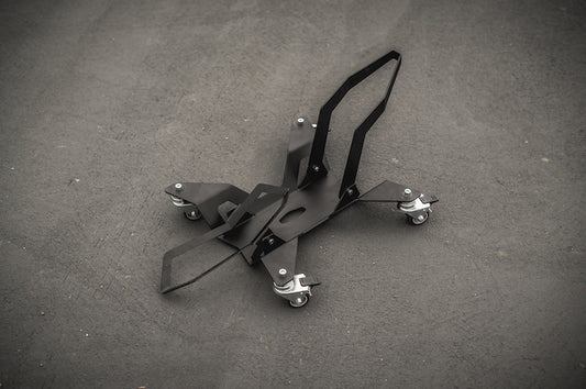 Das Bike Board One von Shredbrothers ist eine sinnvolle Ergänzung in der Garage, im Keller oder in der Wohnung, wenn man sein schweres E-Bike auf engstem Raum manövrieren muss, es aber nicht dauernd aus dem Bikestand hieven will.